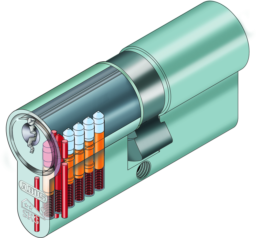 - De Abus E60 veiligheidscilinder SKG** beschikt over een gevaren/paniekfunctie d.w.z. dat de cilinder aan de buitenzijde ook bedienbaar is als er aan de binnenzijde een sleutel in steekt.