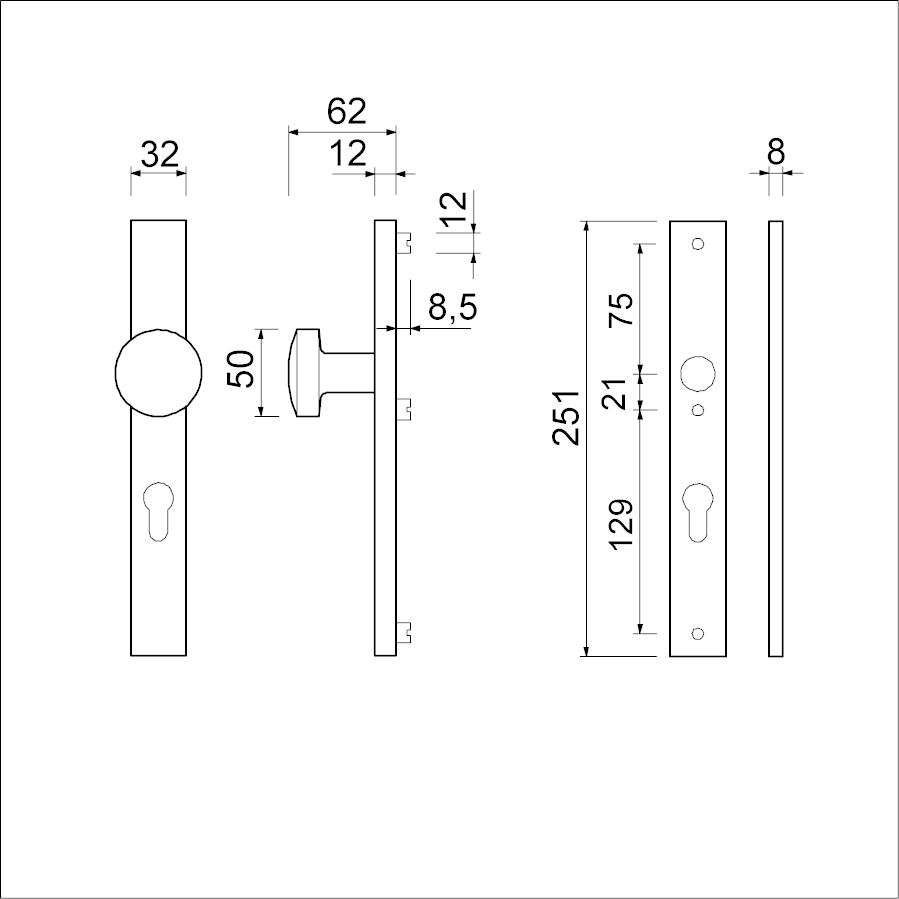 binnenschild 8 mm met deurkruk 357 vastdraai-