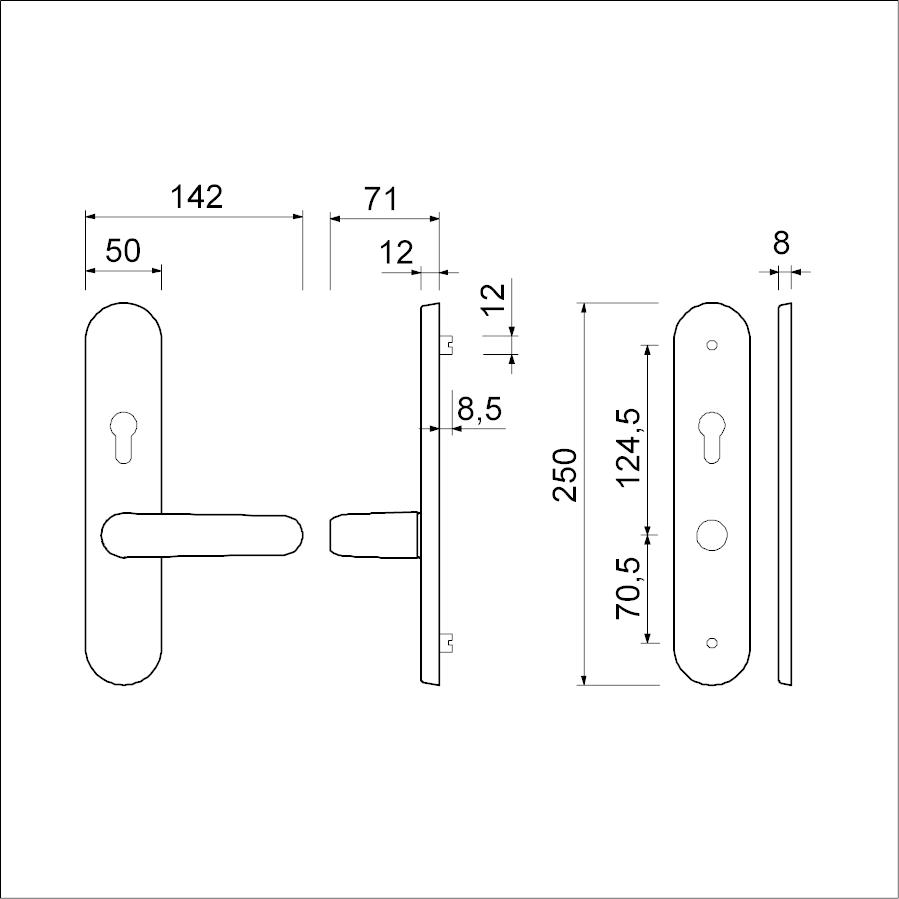 Complete set: Buitenschild 12 mm met deurkruk 378 ROTA