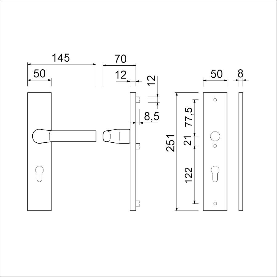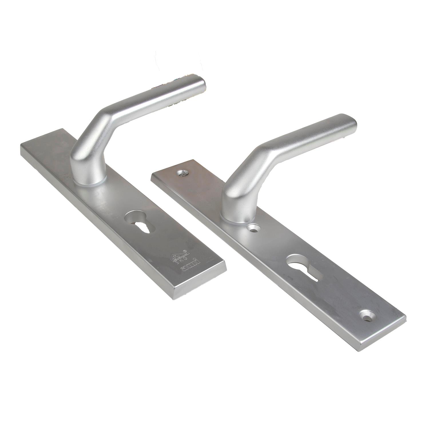 Complete set:Buitenschild 12 mm met deurkruk 379 ROTA verend vastdraaibaar,binnenschild 8 mm met deurkruk 379 ROTA verend vastdraaibaar,vierkantstift 8 mm en 3 schroeven M6 RVS