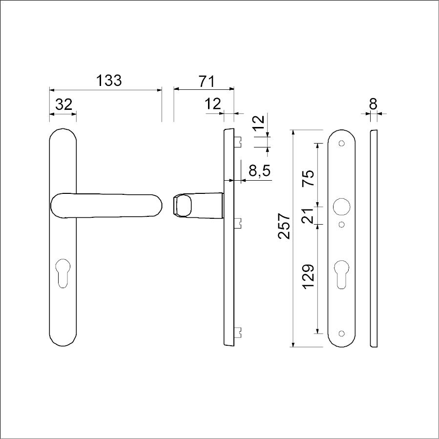 Complete set: Buitenschild 12 mm met deurkruk 378 ROTA