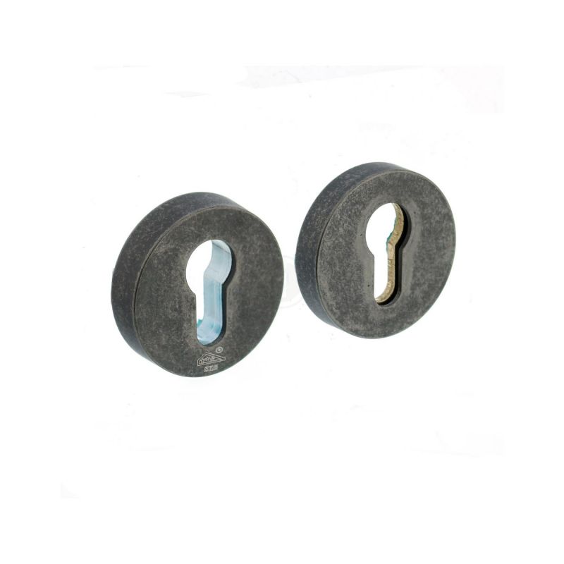Ronde set veiligheidsrozetten met profielcilindergat en SKG*** keurmerk. Dit product wordt uitgevoerd in messing en wordt eerst vernikkeld, vervolgens voorzien van een zwarte finish en ondergaat daarna een trommelbehandeling. Hierdoor krijgt de set een bijzonder uiterlijk. Dit veiligheidsbeslag is daarnaast SKG*** gekeurd, wat betekent dat het om extra zwaar inbraakwerend beslag gaat.