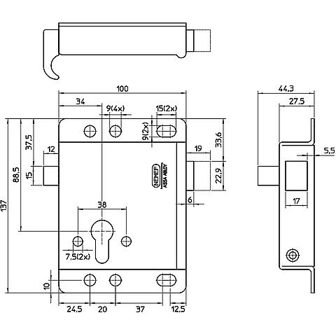Productinformatie "Nemef 1543K/5 Opleg nachtschootslot rechts dr 1"