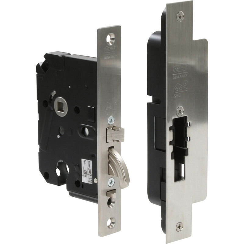 Nemef 4109/28-50 is een zelfsluitend veiligheidsdeurlsot met haakschoot. Zodra men de deur dicht trekt is deze altijd op slot dus u hoeft zich geen zorgen te maken. Vanwege de bijgeleverde sluitplaat en de verstelbare sluitkom is flipperen niet mogelijk i.c.m. het haakschoot.