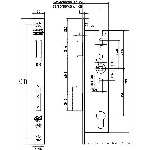 Nemef 4169/18-35 veiligheidssmaldeurslot SKG** rechthoekig rs/ls dr 1/2