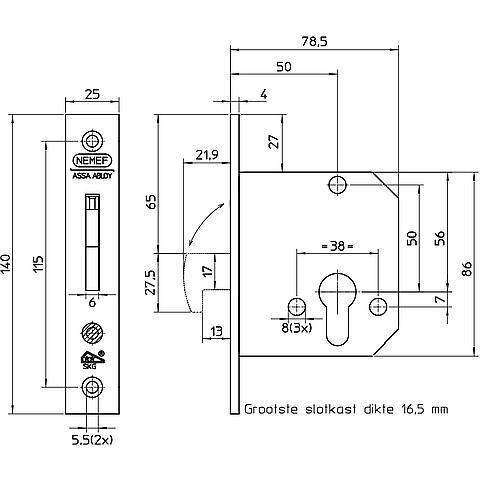 Productinformatie "Nemef 4208/17-50 Veiligheidsbijzetslot SKG** rechthoekig"