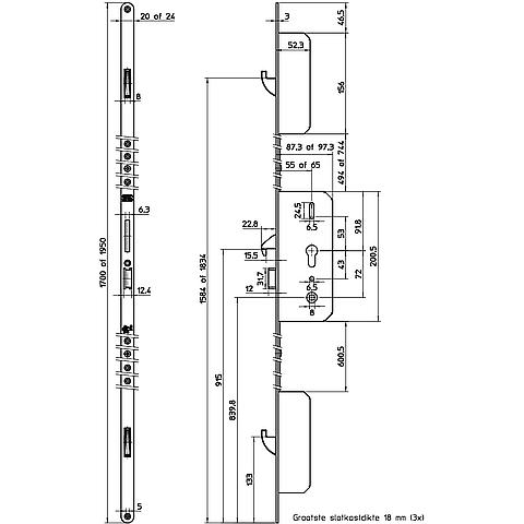 - Door speciale haakschootlengte kan een sluitnaad (stolpdeuren) van 10 mm overbrugd worden