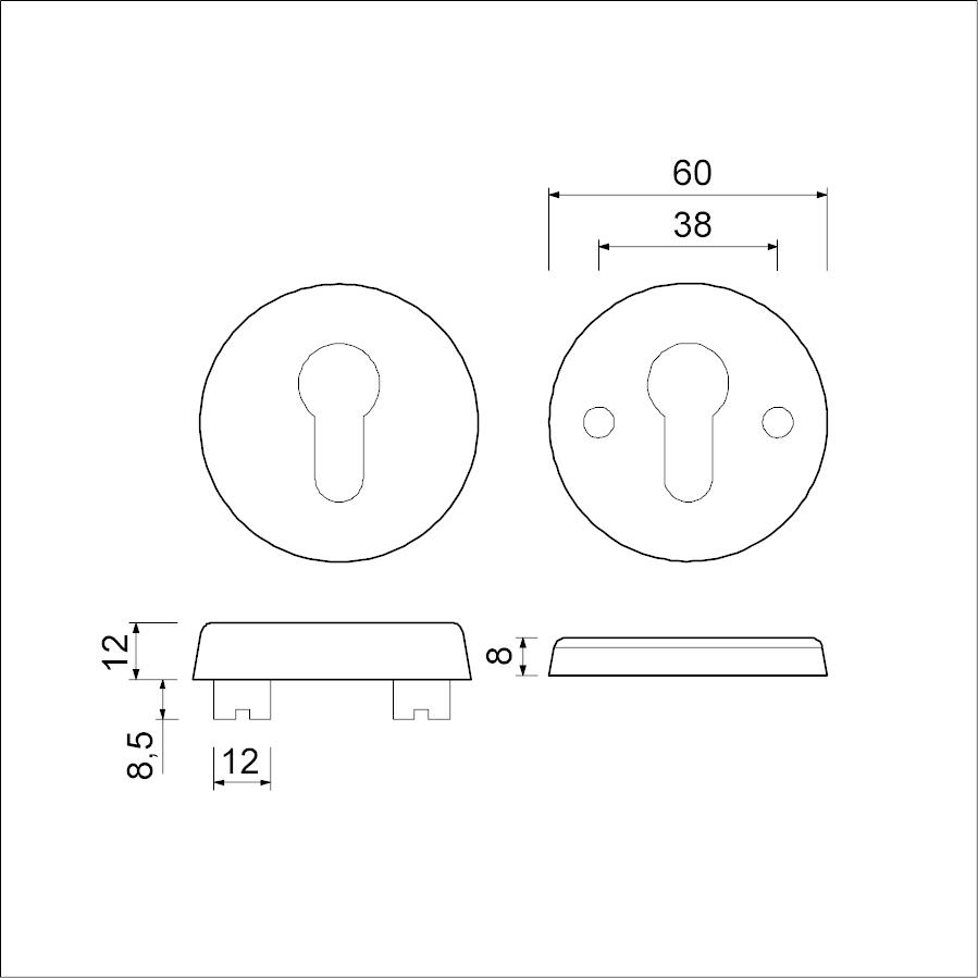 Buiten rozet 12 mm en binnen rozet 8 mm.