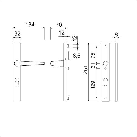 Complete set: Buitenschild 12 mm met deurkruk 357 vast-