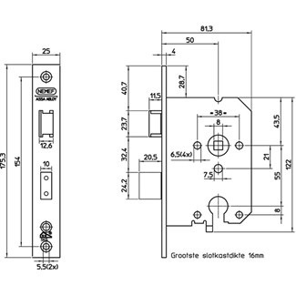 | Afmetingen voorplaat (in mm): | 174 x 25 |
