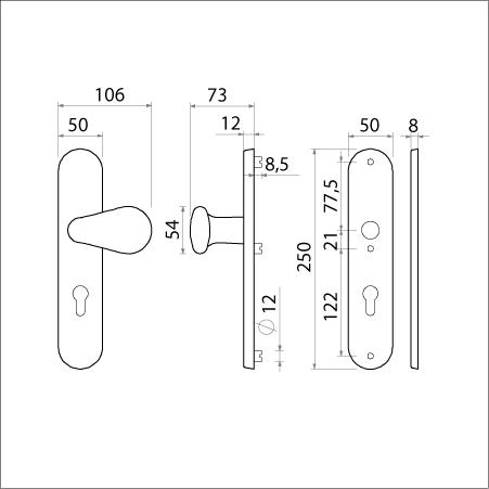 binnenschild 8 mm met deurkruk 386 ROTA verend vastdraaibaar, vierkantstift 8 mm en